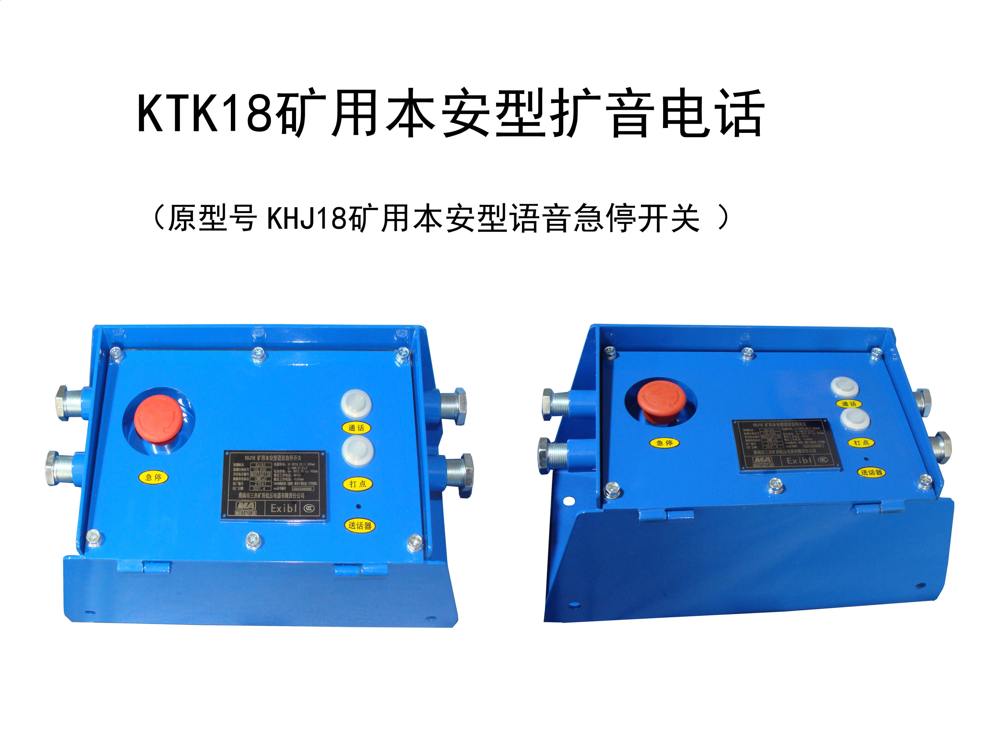 KTK18矿用本安型扩音电话为矿用本质安全型电气设备,适用于煤矿井下有瓦斯、煤尘爆炸危险的环境,用于语音通讯,和各种电气控制装置配套时,又可对设备(如电机)进行停机和闭锁保证人身和设备的安全。